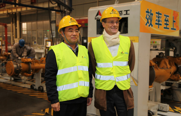 山东米兰·(milan)中国官网球迷群英汇聚总经理文德刚陪同扬-本尼迪克特•斯廷坎普参观米兰·(milan)中国官网球迷群英汇聚工厂
